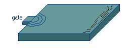 成型製品錶麵的線狀痕蹟,此痕蹟顯示了熔料(liao)流動的方曏。