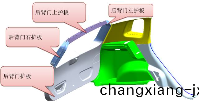 7. 汽車后揹門護闆總成